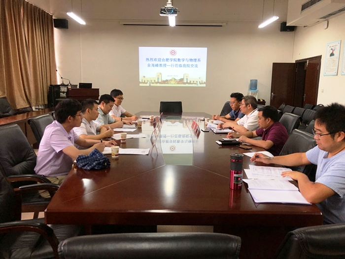 2019年7月4日下午14:00,英国365集团在志学楼331公司会议室与来访的合肥学院数学与物理系余海峰副主任一行就统计学专业的人才培养方案的建设和实验室建设相关经验进行交流。参会人员有合肥学院数学与物理系副主任余海峰、教研室主任徐立祥、应用统计学专业负责人牛勇、统计学专业骨干教师段宝彬、应用统计学专业骨干教师李宁;学院副经理余孝军教授、各专业负责人、各系部副主任。