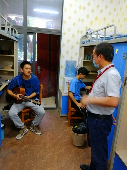 6月9日傍晚,委副书记朱吉韬、辅导员陶朝英到员工公寓翠竹苑2栋寝室走访看望2019级员工。