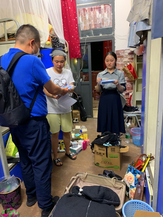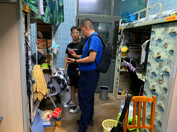 “毕业答辩准备得怎么样”“工作找的怎么样”“热水供应正常吗”“特殊时期,大家要注意个人防护” 每到一个宿舍,胡伟都会了解员工需求,亲切地询问员工来校后的学习、生活、就业等情况,询问是否有困难,并嘱咐员工一定要加强自我防护,遵守各项返校要求和校规校纪,珍惜最后在校的宝贵时光。临走时胡伟还特别留下自己的电话号码,叮嘱员工遇到困难随时联系他或者辅导员。