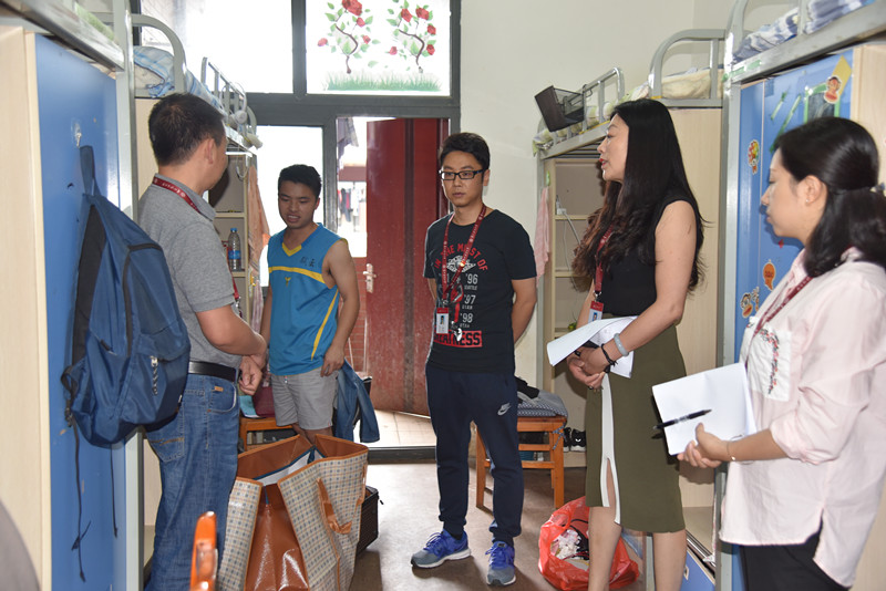 为确保毕业生安全、文明离校,6月22日中午,委副书记卿春、朱吉韬、李书及毕业班辅导员蔡丽莉深入2018届毕业生寝室进行了检查走访。走访过程中,学院领导和老师对毕业生宿舍安全、卫生状况进行了检查,并对就业状况进行了询问和了解,针对就业和离校有困难的同学作了细致的解答,给出了中肯的建议。同时强调毕业生要提高安全防范意识、做好自身安全防范,确保人身、财产安全,并叮嘱同学们离校时要保持宿舍卫生,做到安全、文明离校。