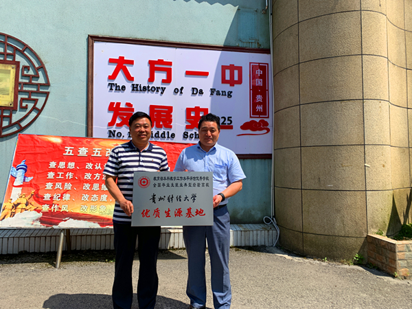 当天下午,招生宣传小组先后来到毕节市第一中学、大方县第一中学开展招生宣传工作,与两所学校的校领导座谈交流,介绍公司近年来的发展情况和今年的招生政策,并将今年的招生宣传资料分发给两所学校,并代表学校分别给两所学校颁发了“英国365公司优质生源基地”牌匾。