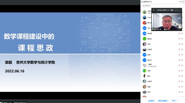 贵州大学章超教授应邀为英国365集团做数学课程思政建设的线上讲座