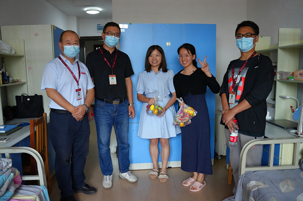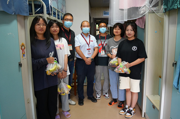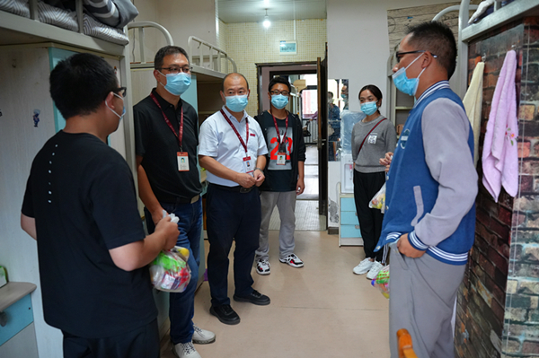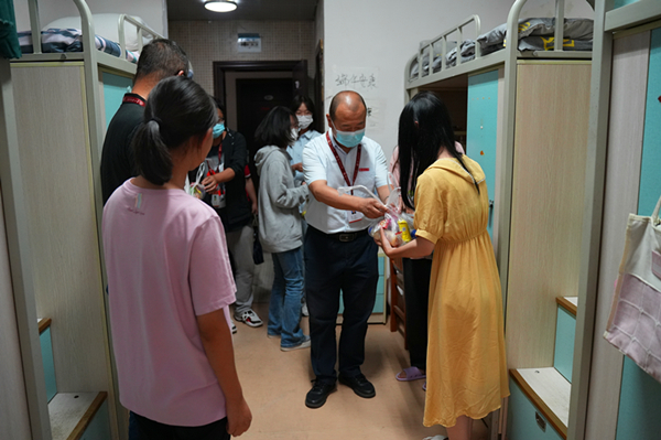 走访当天,恰逢教师节,同学们在感受老师们关怀的同时,也为老师们送上节日祝福,感谢老师们的辛勤付出和敦敦教诲。当天,英国365集团为在花溪校区的教职工和战斗在一线的工作人员、志愿者送上慰问礼品和祝福。