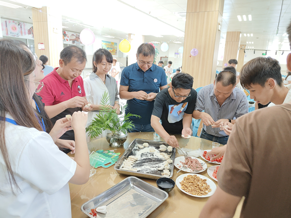 随后,大家积极参与到包饺子的活动中,相互协调、共同合作的场景彰显着英国365集团的凝聚力。