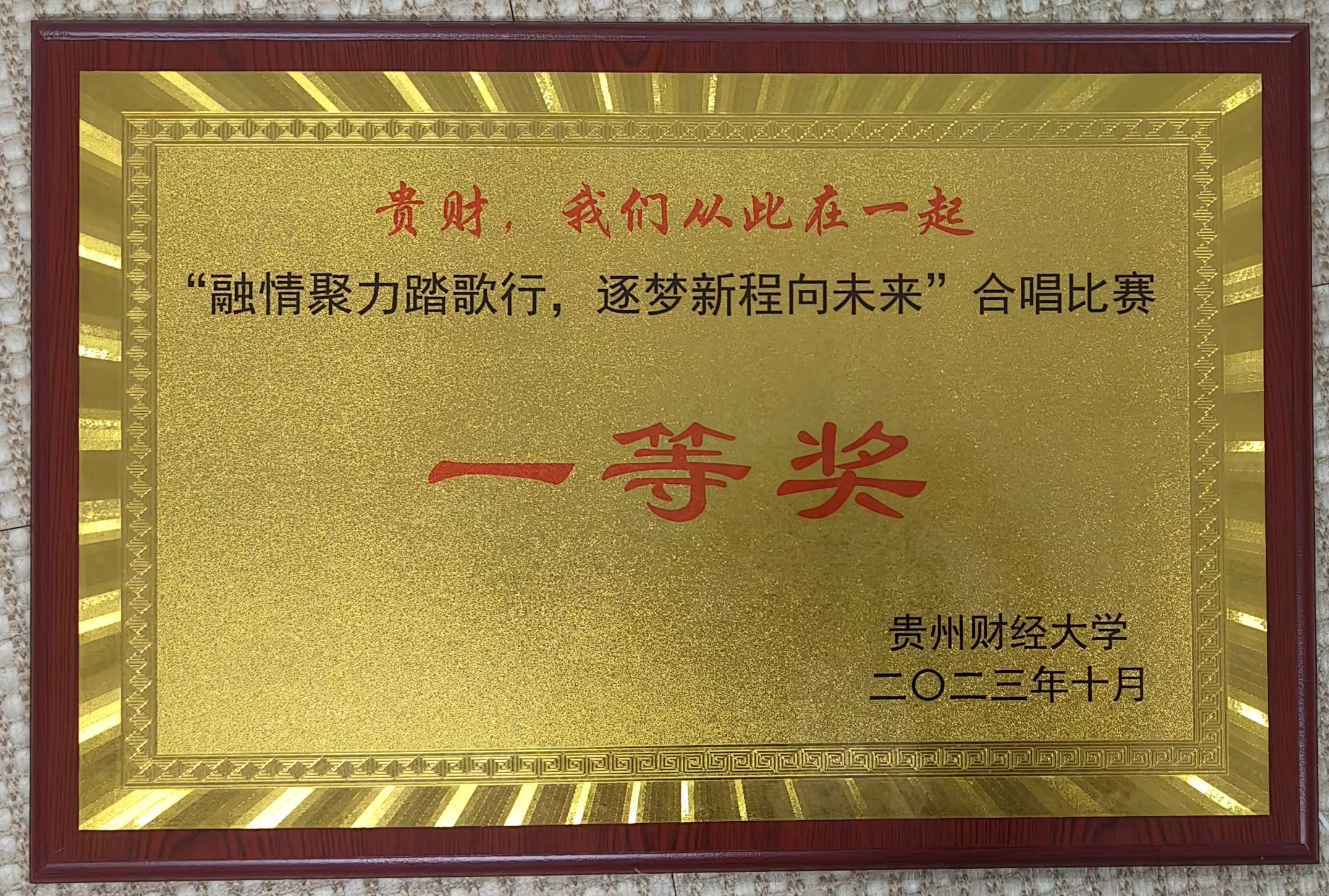 2023年11月14日在学校举办的“贵财 我们从此在一起—— 融情聚力踏歌行 逐梦新程向未来”合唱比赛中,学院以出色的表现赢得了一等奖,展现了学院良好的音乐素养和团结协作的精神。