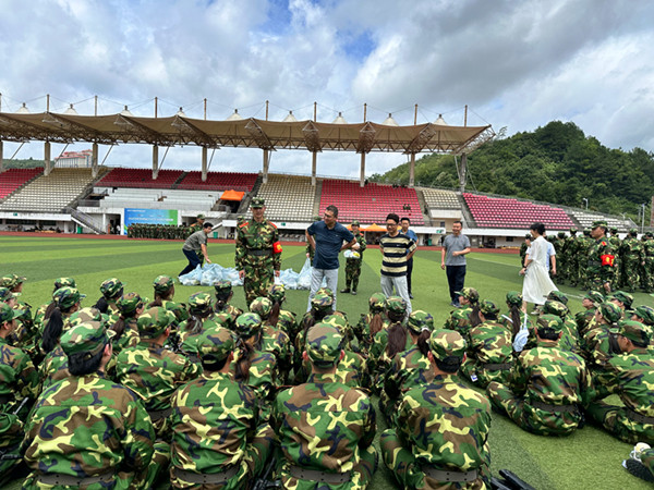 7月4日上午,公司党委书记虞帆、副书记朱吉韬、李书、副处级专职组织员余纯、副经理张千宏及辅导员蔡丽莉到学校体育场慰问2022级军训学子。
